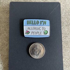 Hello I'm Allergic To People UFO Funny Anti Social Lapel Pin Nametag