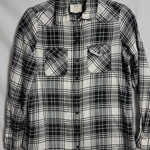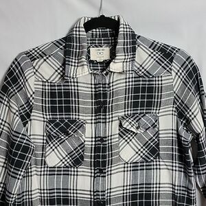 I LOVE H81.. black and white plaid flannel.. Size Med..