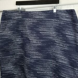 blue and white skirt.. missing little hook right above zipper.. but skirt is still in great condition.. Size 22