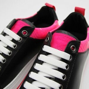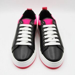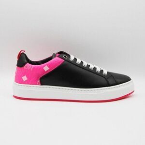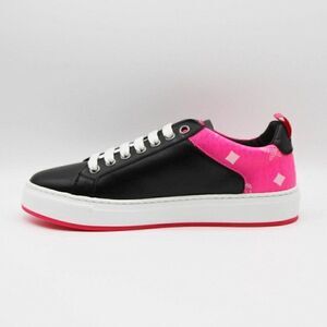 $520 MCM Women Black Leather Neon Pink Trim Low-top Sneaker 36/US 6