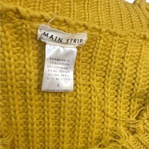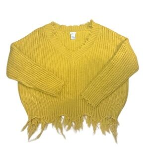 🦄 5/$20 Main Strip Women’s Mustard Distressed V-Neck Knit Sweater Large