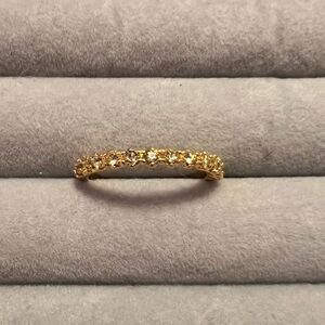 Diamond Crystal band with stones half way around the ring. Size 7.5. Makes a great gift. Comes with a jewelry pouch.