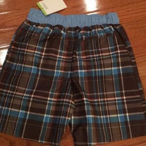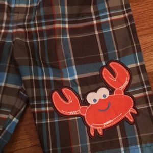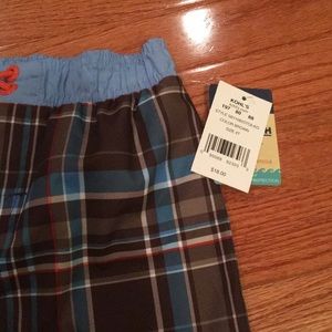 Osh kosh size 4t swim suit NWT elastic waist brown plaid with a crab
