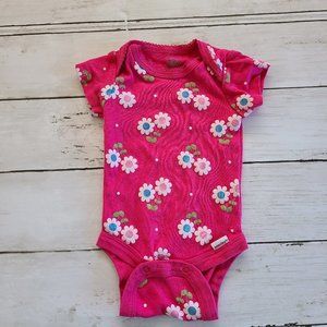 ♡ 5/$20 - Onesie Girl's Magenta Pink Floral Short Sleeve Bodysuit 0-3mo.