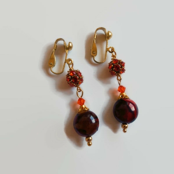 Lovely fire orange Rhinestone earrings. Clip, but I can easily switch out for pierced, just message me after purchase.