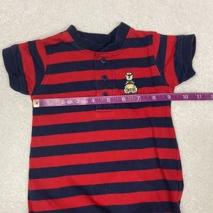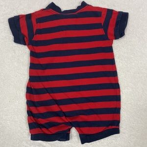 5/$20 Oshkosh navy red striped romper bear driving car 0/3m up to 12 lbs