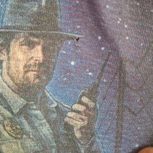 This black Stranger Things t-shirt features a vibrant graphic design. Perfect for young fans of the series. About 24" long, pit to pit 19". See little hole on the front.