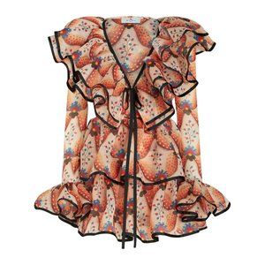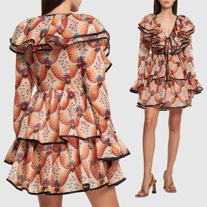 $5200 New Etro 2023 Apricot Print Ruffle Runway Mini Dress.
