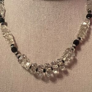 Necklace with multifaceted clear and black beads. 15” long. 9