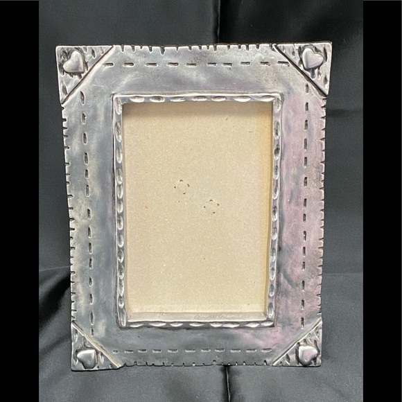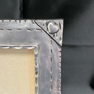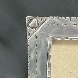 4 x 6 silver hammered metal picture frame with engraved heart designs