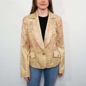 Description: Christian Lacroix hand-painted plaid beige blazer with metallic embellishments. Size FR42 = US L.