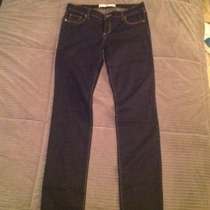Abercrombie & Fitch "Erin" skinny jeans in a very dark wash. Size 8 Long. 99% Cotton, 1% Elastane. Have a lot of stretch. Like new since I never really wore them.