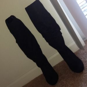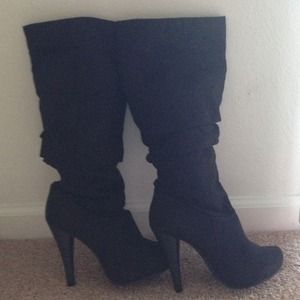 NWOT. Never been worn a scrunchy, suede boots. Below the knee and above the calf. 4 1/2 inch heel. I would just prefer a 7.5, but they are great comfortable boots!