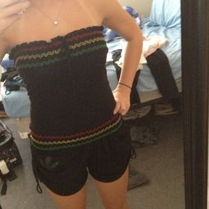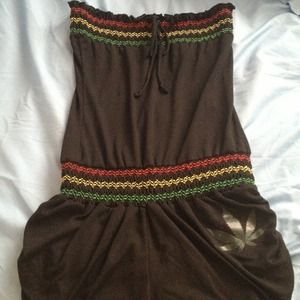 Rasta black romper with yellow green and red and the traditional pot leaf lol. NEW without tag.