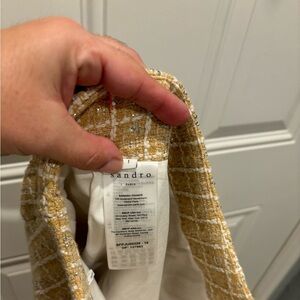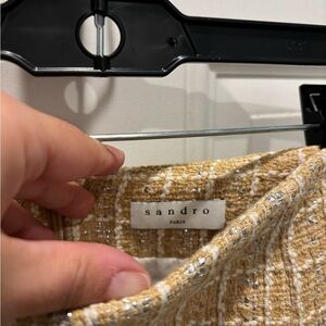 $523 Sandro Women Beige Tweed High Waist Metallic A-Line Mini Short Skirt Size 1