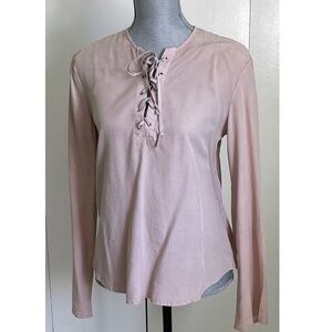 Gently used ribbed sweater. Materials consist of rayon and polyester. Very stretchable! It's a size L, but honestly could fit a S, M. Very comfortable! Burnt orange color.