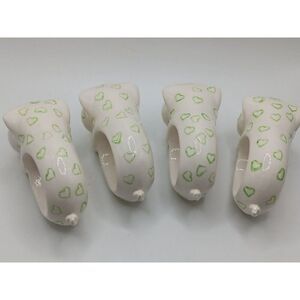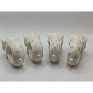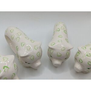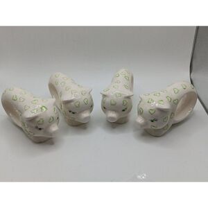 5/$25 4 Hand Painting Signed Pig Napkin Holders W/Green Hearts Vintage 1986