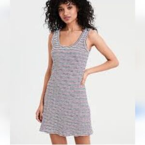 💚5/$25 AEO Ribbed Stripe SleevelessTank Dress Size XS Navy White Red Stretch