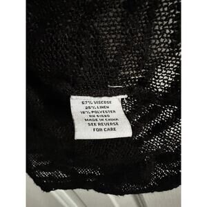 Gently pre-owned. No rips or stains. Semi-sheer slub knit. Linen/viscose/polyester blend.