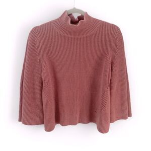 525 AMERICA Mock Neck Bell Sleeve Ribbed Knit Sweater M Medium Salmon Pink Cozy