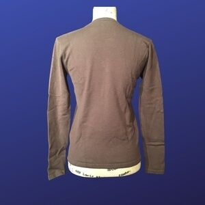 Pre-owned, LIKE NEW; 52% Cotton, 33% Acrylic, 13% Nylon, 2% Spandex; V-neck; long sleeves; reinforced neckline (rear interior); STRETCH TO FIT.