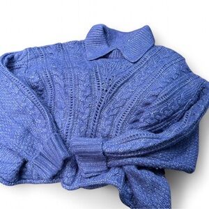 525 America Blue Alicia Revolve Cable Knit Polo Pullover