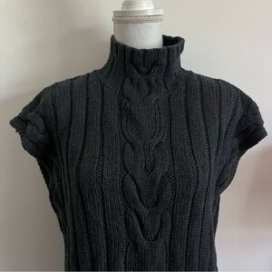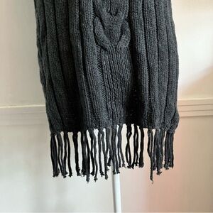 525 America • Charcoal Grey Mock Neck Short Sleeve Fringe Sweater