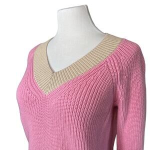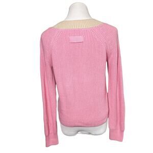 525 America Cotton Shaker Colorblock V Neck Woven Sweater Cotton Pink Tan Small