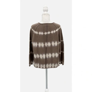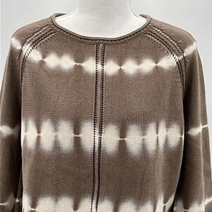 525 America Cotton Tie Dye Crop Sweater - Size Small. Excellent pre-owned condition. Tie dye in nutmeg on white, oversized fit, cropped length, side splits at hemline, detail stitching, round neckline with rolled edge, inverted seaming, 100% cotton. Approximate measurements: 21" pit to pit, 22" length.