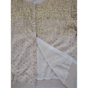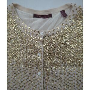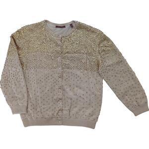 525 America Cream Gold Cashmere Blend All Over Beaded Cardigan Women Size L VTG