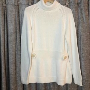 525 America Cream Turtleneck Sweater with Button Belted Detail Size Extra Large