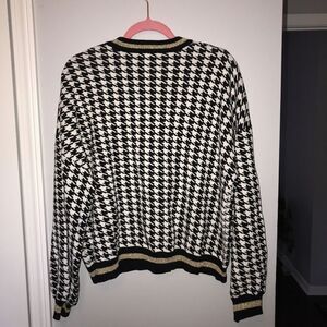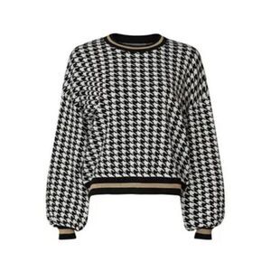 525 America Houndstooth Pullover Sweater Balloon Sleeve Size XL Black White Gold