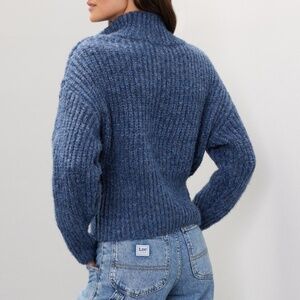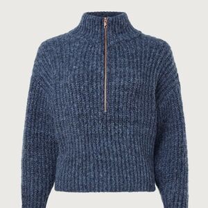 Blue knit (43% Recycled Polyester, 34% Polyester, 23% Acrylic). Sweater. Long sleeves. Quarter zip. Front zipper closure. Imported.