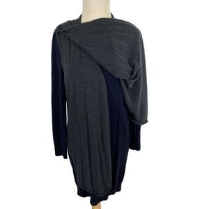 525 America M Navy Gray Sweater Dress Merino Wool Lagenlook Art To Wear Boho