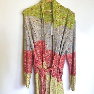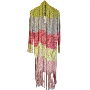 525 America Multicolor knit fringe cardigan sweater open front long duster M/L