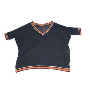 525 America Navy V-Neck SweaterStriped Trim XS/S Womens Linen/Viscose 2382