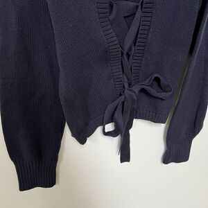 525 America Open Back Lace Up Turtleneck Chunky Knit Sweater Navy Blue S NWT