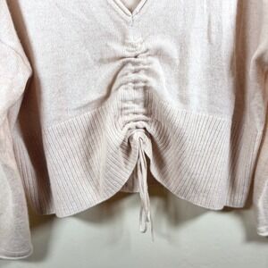 525 America Ruched Front Pullover 100% Cashmere Sweater Sz XS/S Cream Beige Soft