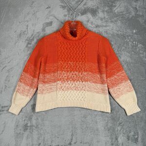 525 America Sweater Womens Small Orange Ombre Turtleneck Chunky Knit Preppy Cozy