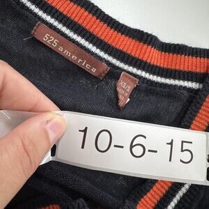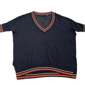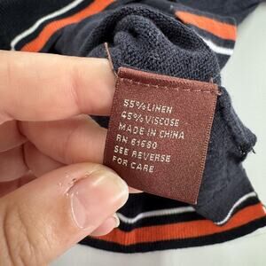 525 America Sweater Womens XS Blue Black Striped V Neck Linen Blend Pullover