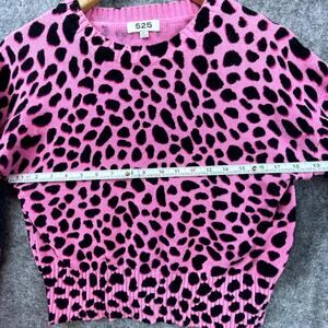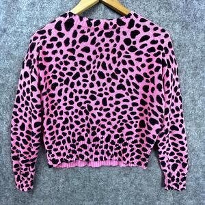 525 America Sweater Womens XS Pink Leopard Spots Barbie Mob Wife Maximalist