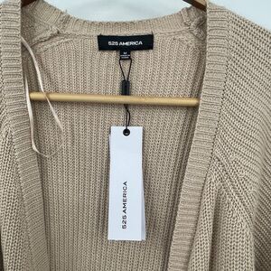 525 America Tan Ribbed Knit Open Front Cotton Cardigan Sweater Medium NWT