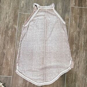 Stylish cream & taupe tank top by 525 America. Features a sleeveless design with a high-low hem. Ideal for versatile styling.