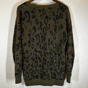525 America Womens Button Front Leopard Print Cardigan Sweater Green Size Medium