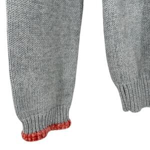 525 americana gray sweater with a pinky orange chenille heart on the front. Chenille trim also around the neck line and the cuffs. The size extra small it is new without tags. Laid flat it measures approximately 18 inches armpit to armpit and the length from the top of the shoulder down the back 23 inche