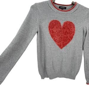 525 America Womens Heart Sweater Gray Valentines Day Oversized Size XS NEW