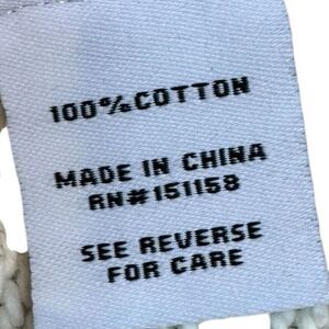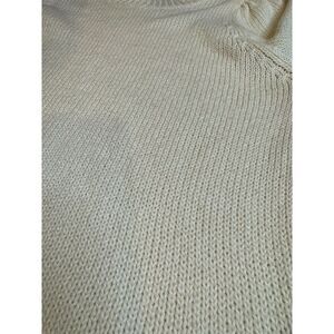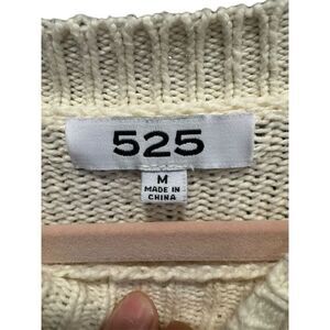 This 525 America pullover sweater is designed for women in size M. It features a solid ivory color with a round neckline and long puff sleeves. Made from cotton, it offers comfort and style. The sweater is manufactured in China and includes care instructions on the reverse. Condition is pre-owned.