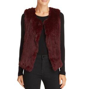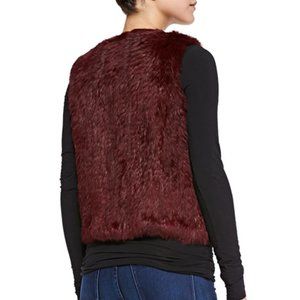525 America Womens Rabbit Fur Open Front Casual Vest Burgundy