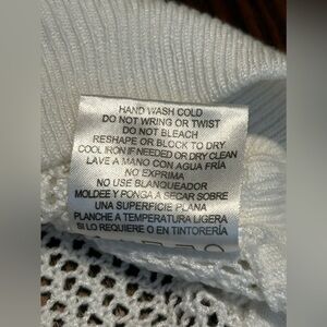 The sweater features a round neck neckline, cap sleeves, and long sleeves. It also has a pull-on closure, making it easy to wear. The total length is 19 inches, and the bust measures 39 inches. The garment care instructions recommend hand wash only. Get this high-quality pullover sweater from a top brand without worrying about its pre-owned condition.