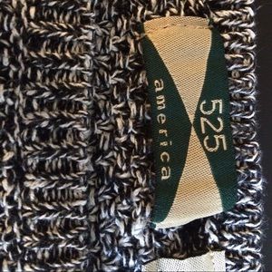Great quality 525 America sweater. The sweater is knitted with white, grey, and black thread. The length of the sweater rests right below the belt. This sweater was a gift from a friend, it's very comfortable and can be worn with leggings, heels, or tennis. I've only worn this sweater 2 times.